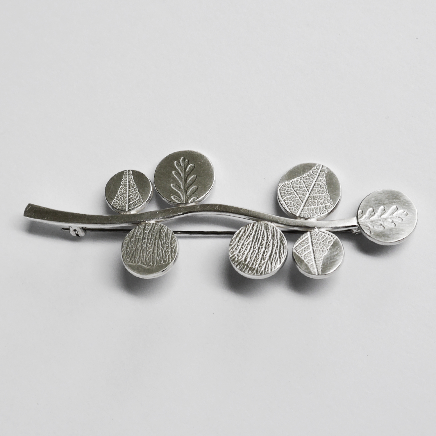 I make bold jewellery from recycled silver with a botanical theme textured with imprints of real leaves and flowers. I use contrasting textures of different plants and accents of 18 carat gold. I also make unique colourful gemstone and opal rings.